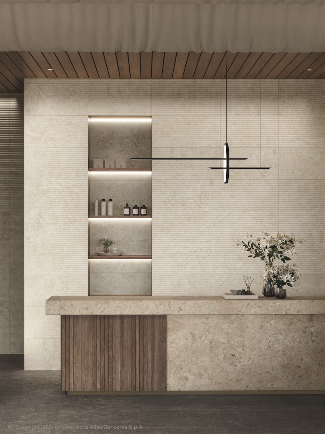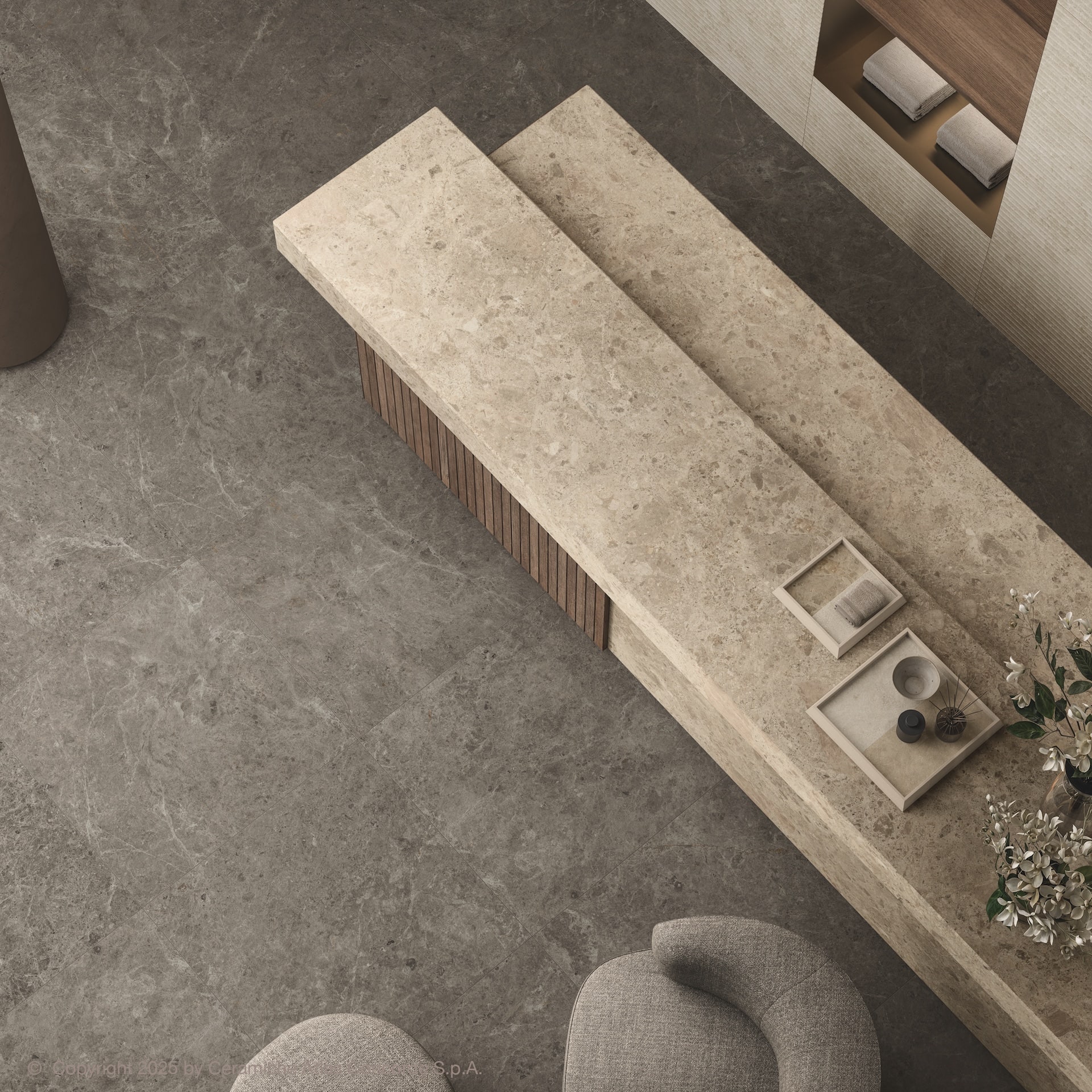 Nyra Ambrosia är en keramisk bänkskiva vars rika och detaljerade mönster ger rummet djup och karaktär. Tack vare Natura Body Tech-tekniken är färgtonerna precisa och jämna över hela bänkskivan.