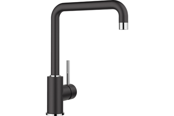 Blanco Mili-F är en elegant köksblandare där den J-formade pipen ger köket ett modernt uttryck. Blandaren är designad för att matcha Blancos Silgranit-hoar perfekt. Med en svängradie på 360 grader och hög pip underlättas hanteringen av stora kärl, även vid mindre diskbänkar.