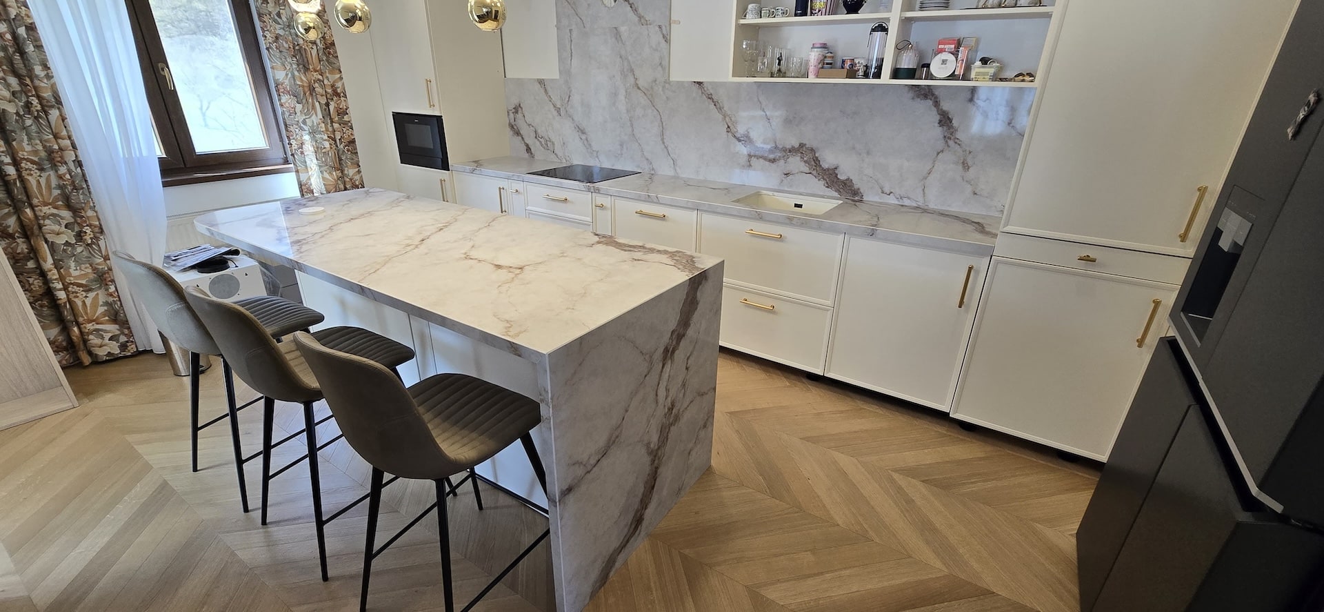 Den släta, icke-porösa ytan gör bänkskivan extremt hygienisk eftersom bakterier inte får fäste. Underhållet är enkelt – en avtorkning med trasa är allt som krävs för att ytan ska se som ny ut igen.