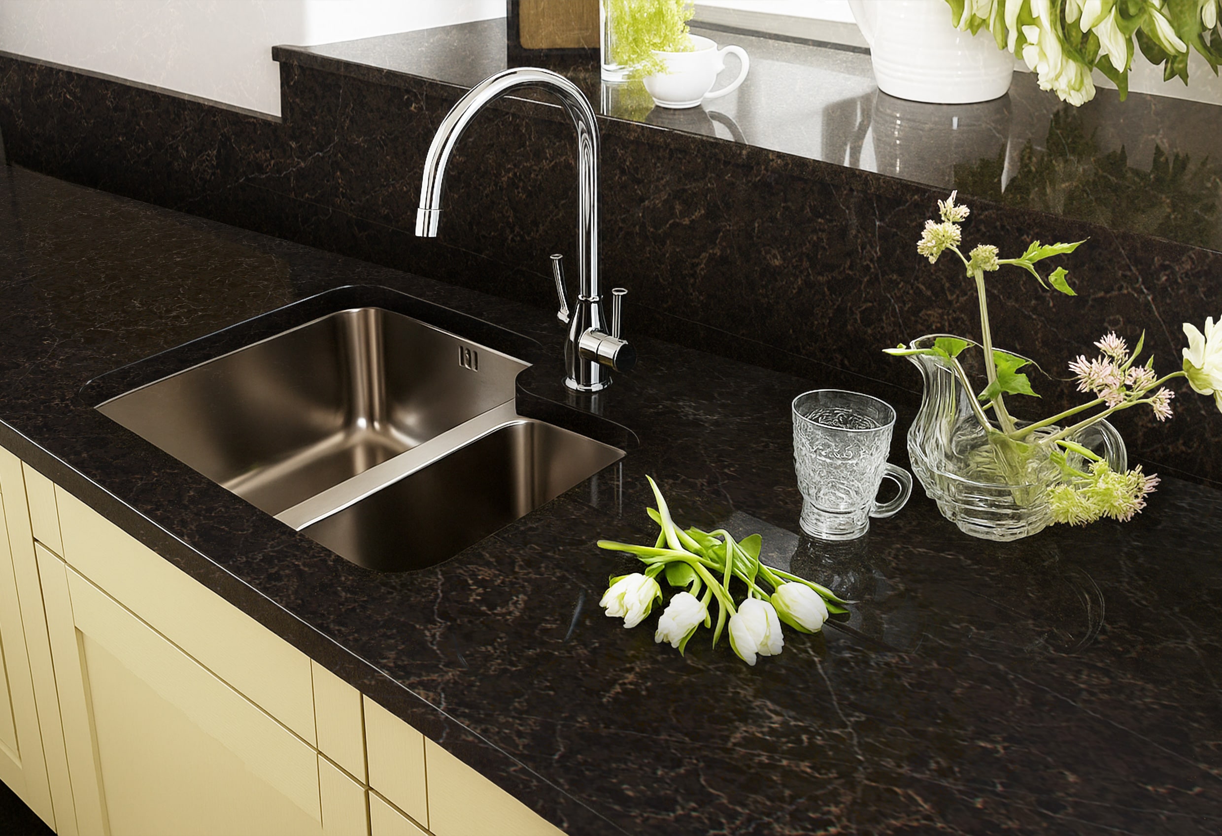 Avant Quartz förenar stilren design med hög funktionalitet. Materialet har utmärkta egenskaper: det tål både värme och kyla och är motståndskraftigt mot repor, fläckar och UV-ljus.