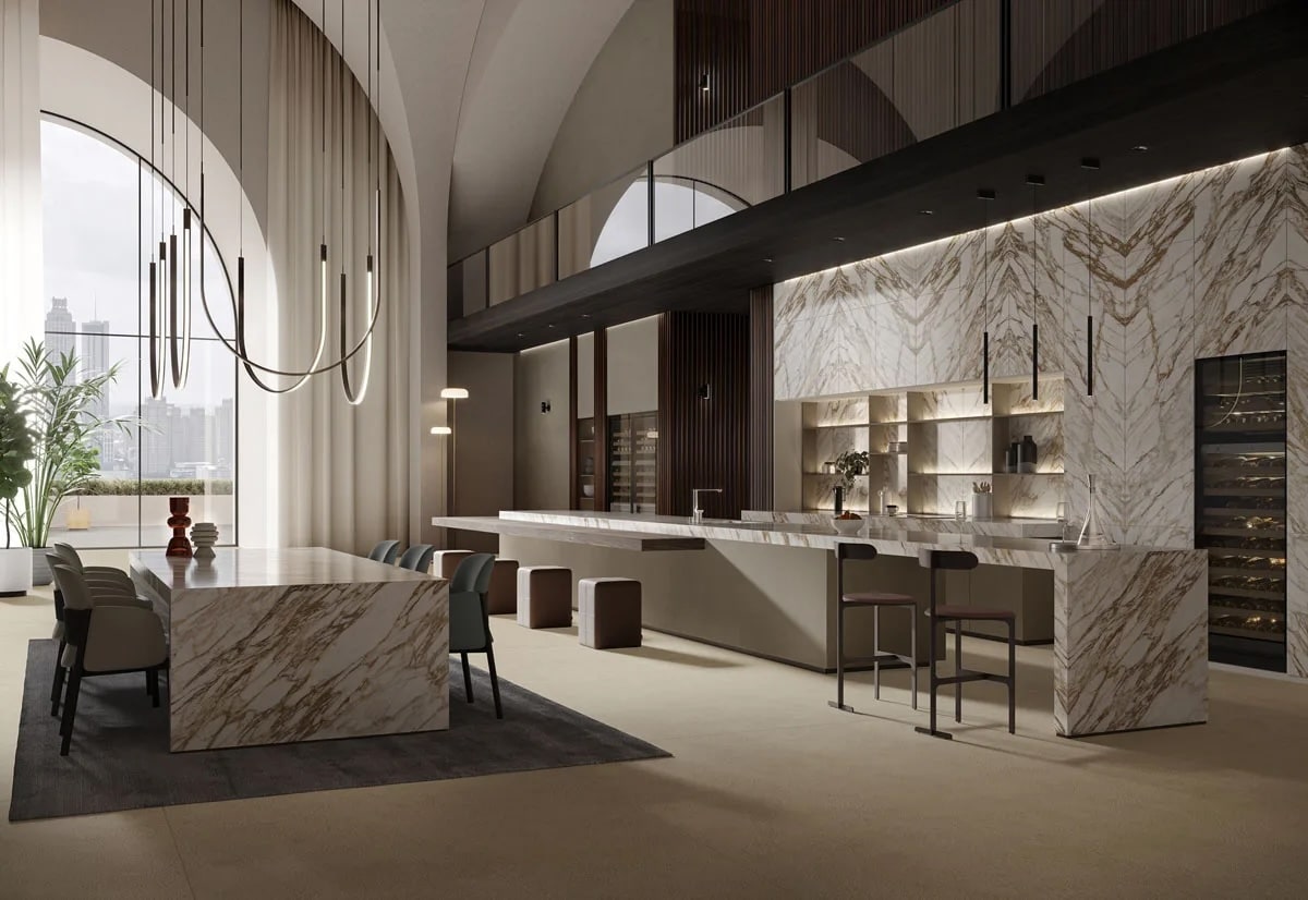 Infinity Arabescato Diva är en hyllning till den italienska marmortradigionens tidlösa skönhet. Denna keramiska bänkskivas ljusa yta med gyllene ådror fångar blicken och skapar ett bestående intryck. Arabescato Diva är en underbar förening av lyx och innovation.