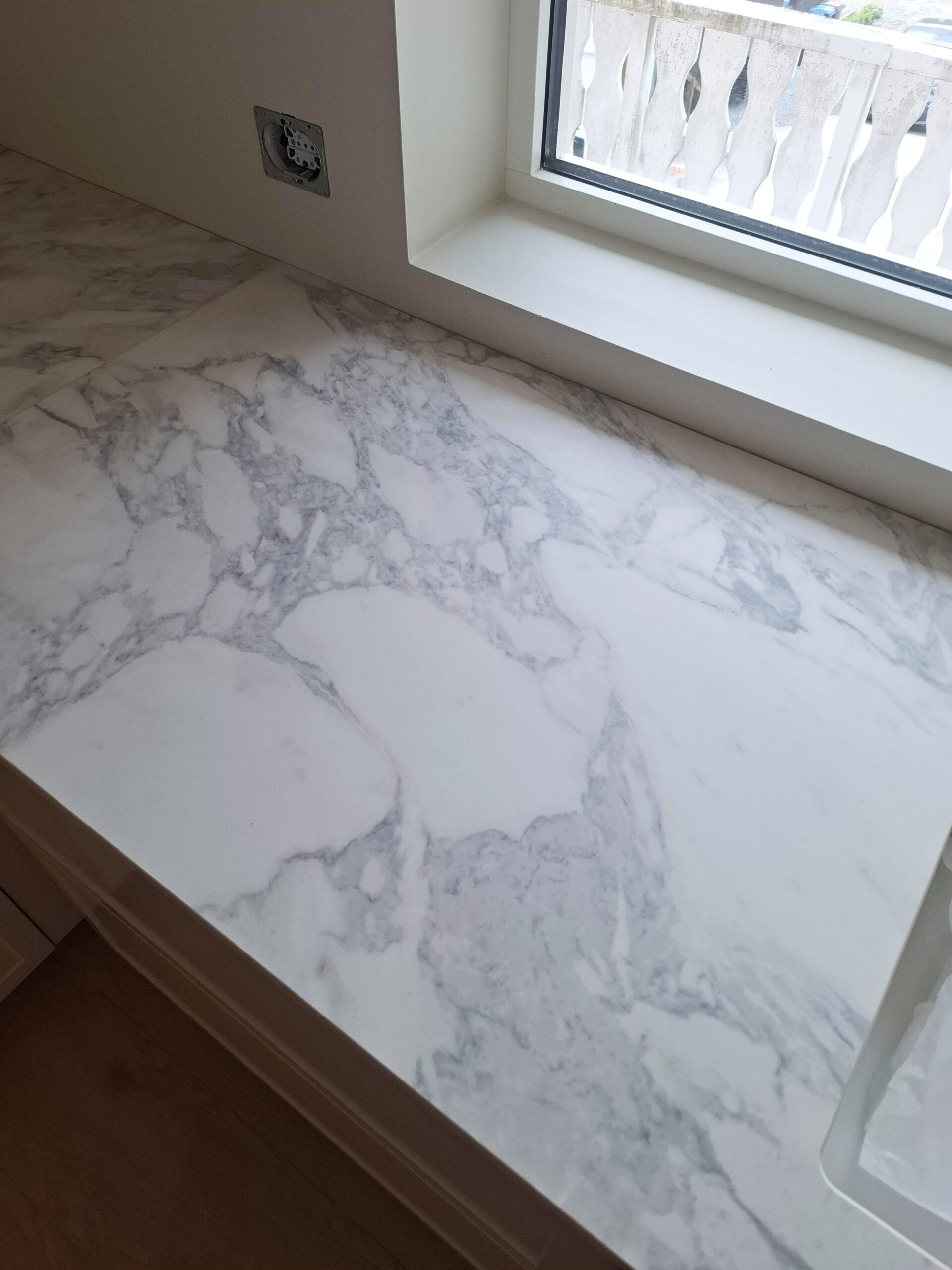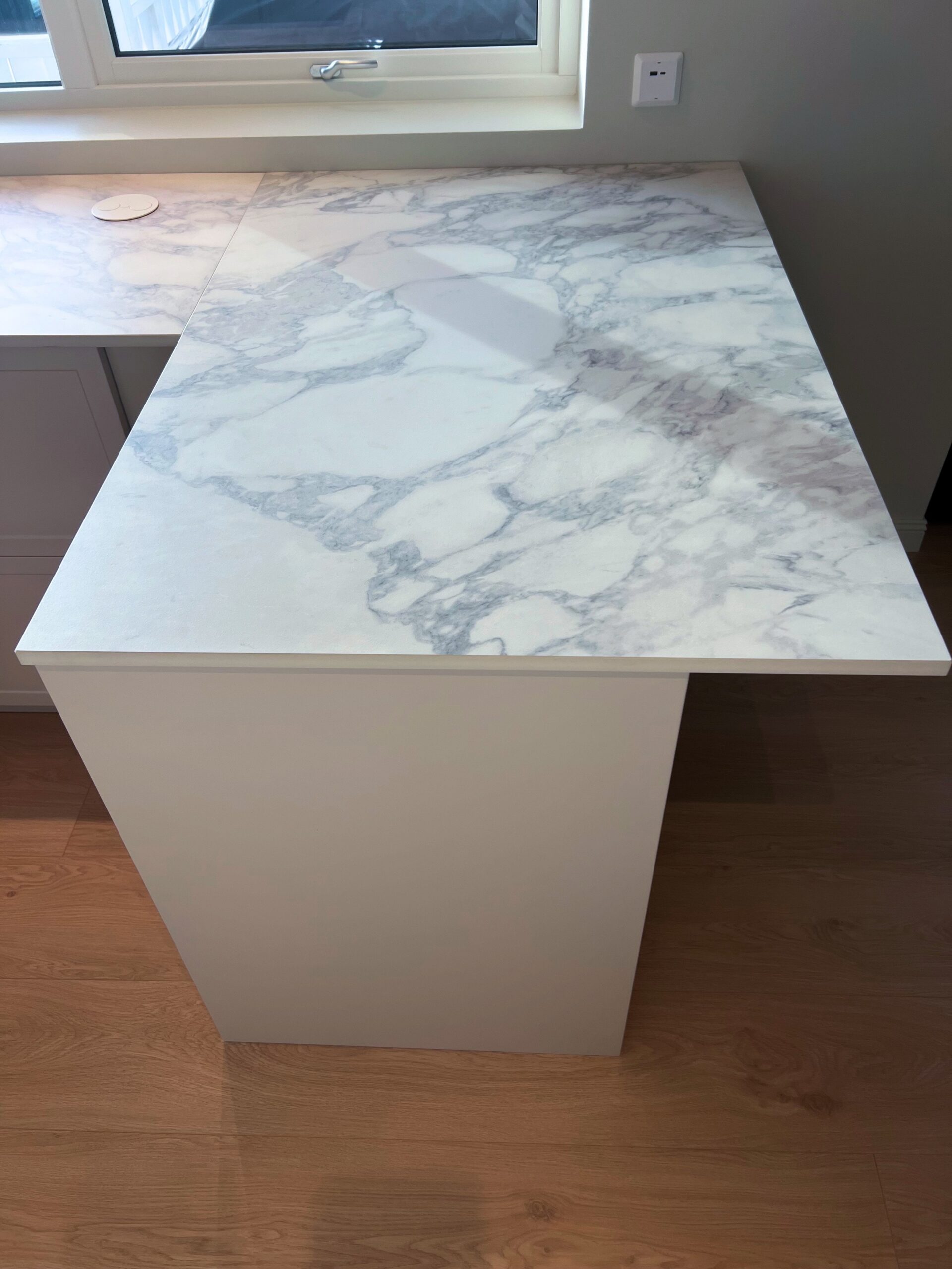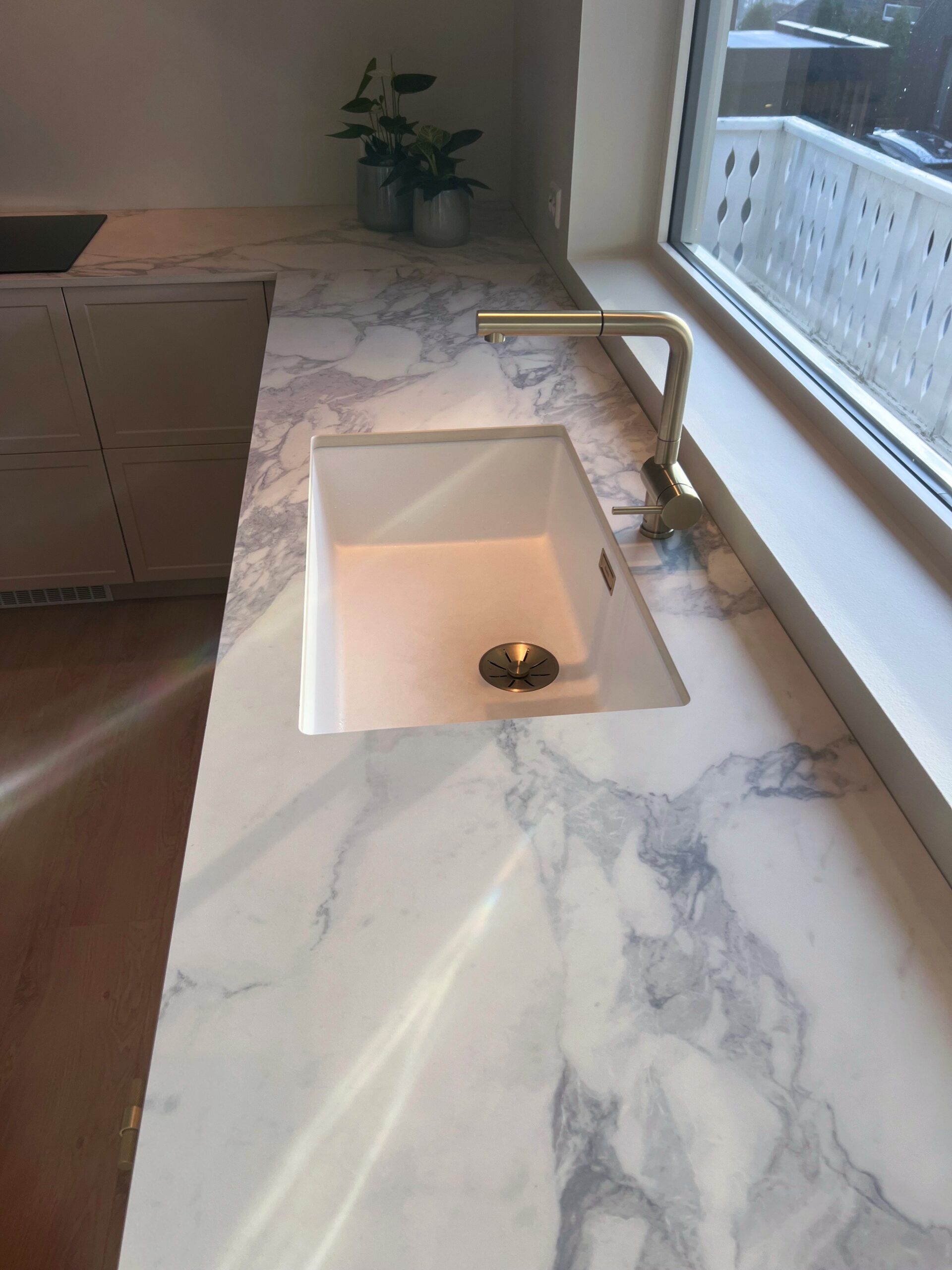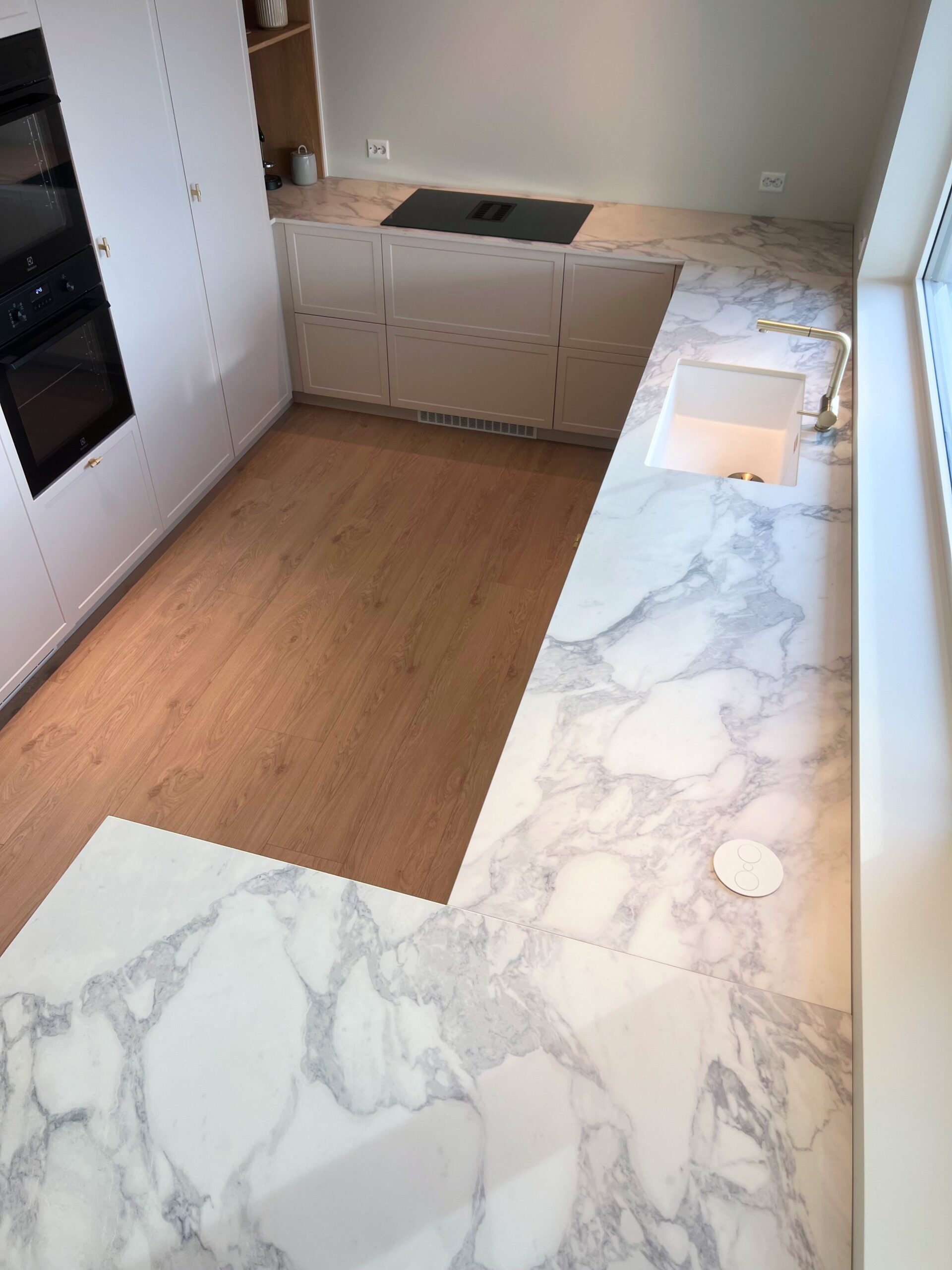 Infinity Calacatta Magnifico är ett konstgjort material (keramik) som har tillverkats av Gruppo Concordo, Italiens största producent av keramiska golv- och väggmaterial. Stenen smyckas av den klassiska Calacattamarmorns gråtonade ådror, vilka slingrar och virvlar mot en pärlvit bakgrund. De grå ådrorna och fläckarna bildar ett uttrycksfullt mönster och ger stenen ett effektfullt och antikt utseende. Materialet liknar ett konstverk och kan pryda såväl arbetsytor i privata kök som foajéer i offentliga byggnader.