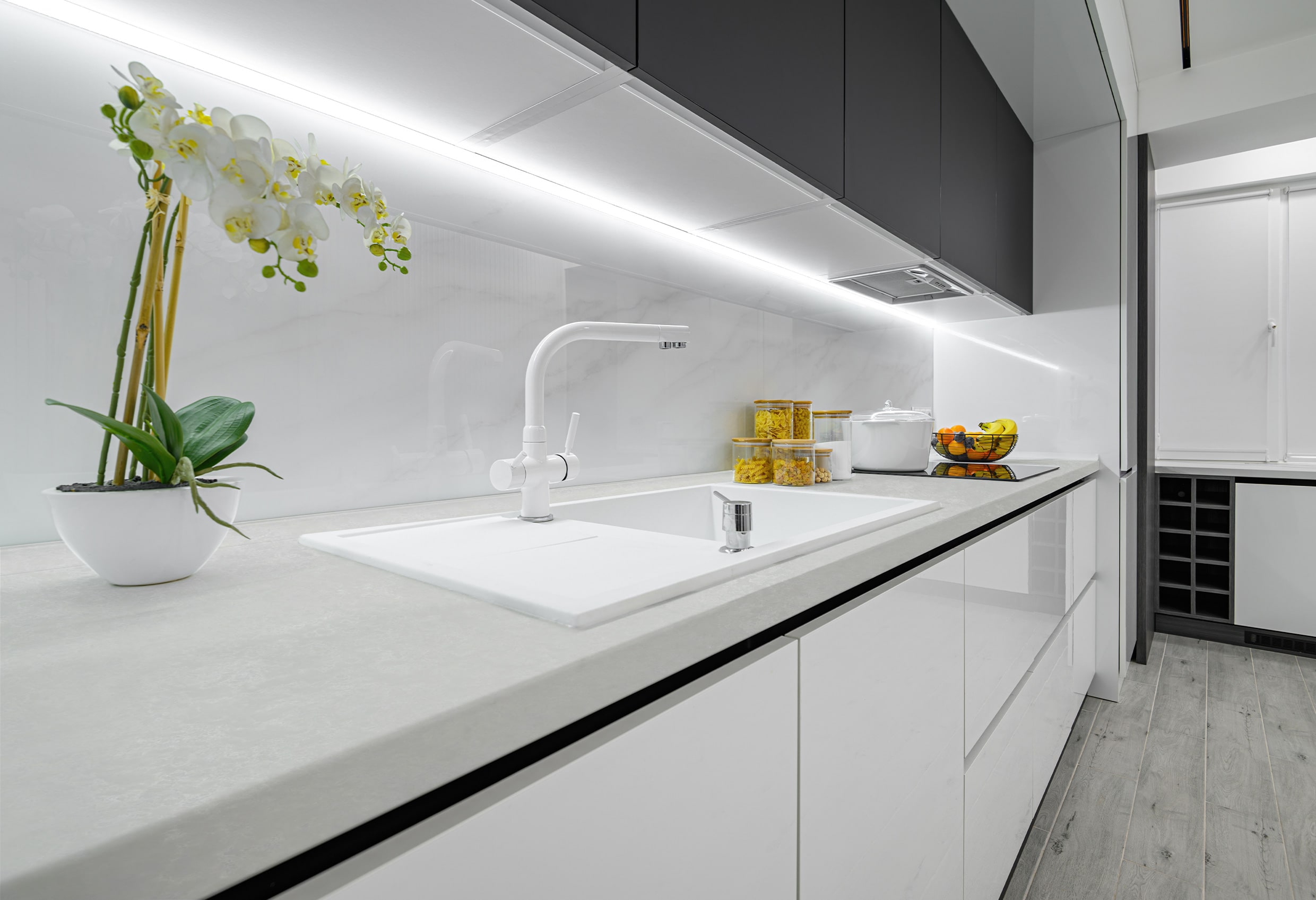 Den släta, icke-porösa ytan gör bänkskivan extremt hygienisk eftersom bakterier inte får fäste. Underhållet är enkelt – en avtorkning med trasa är allt som krävs för att ytan ska se som ny ut igen.